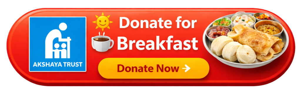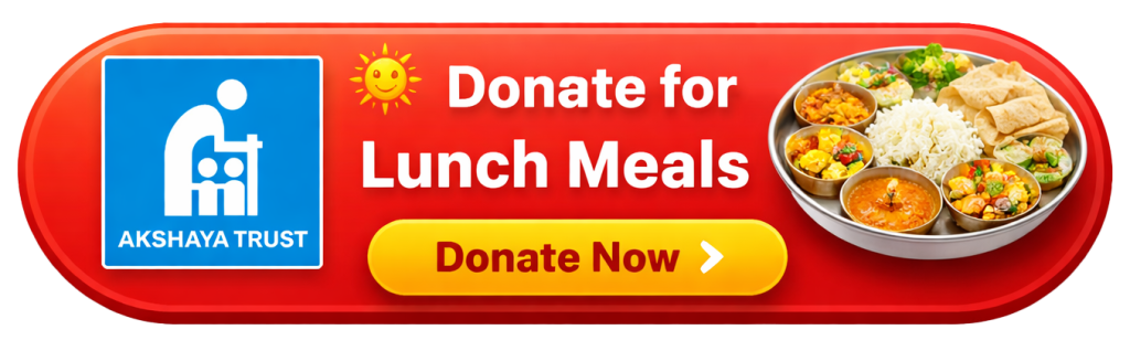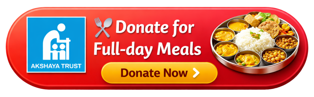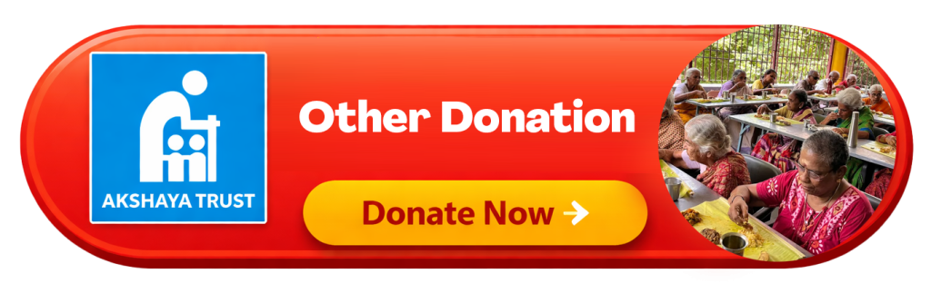 When you support Akshaya Trust, you ensure that no elder is left hungry, alone or neglected. Your contribution becomes care, dignity, and hope.